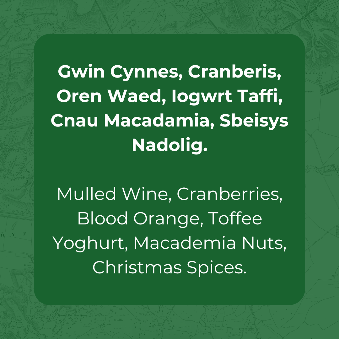 Waed, Iogwrt Taffi, Cnau Macadamia, Sbeisys Nadolig