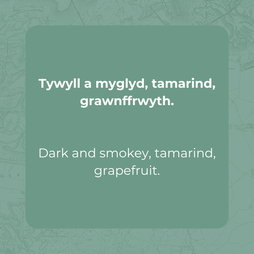 Tywyll a myglyd, aromatig, tamarind, grawnffrwyth.